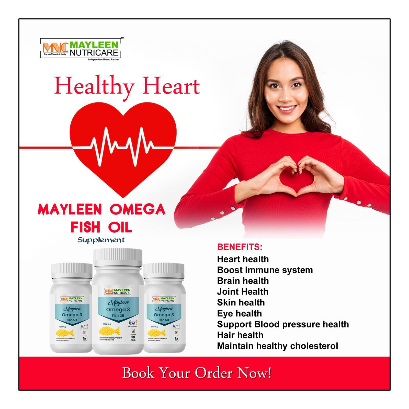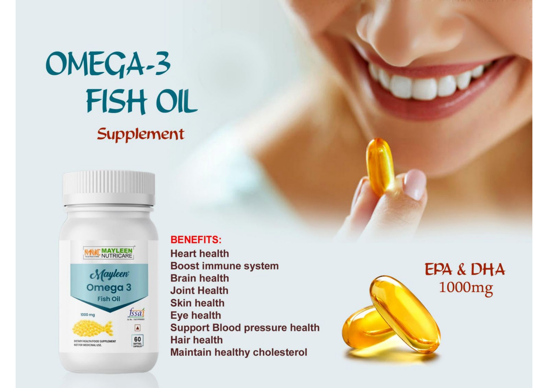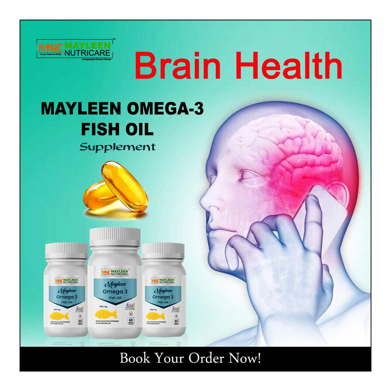 यह प्रोडक्ट Mayleen Omega-3 Fish Oil Supplement है, जो खास तौर पर ब्रेन हेल्थ (Brain Health) के लिए बनाया गया है।